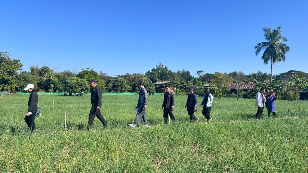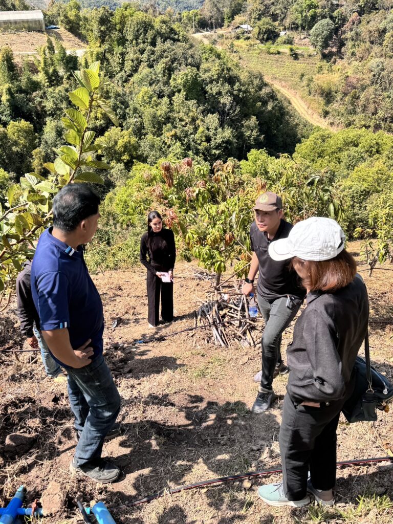 2. เยี่ยมเยียนเกษตรกรต้นแบบปี 2568 (ต่อเนื่องปี 3) ภายใต้ โครงการพัฒนาพื้นที่สูงอย่างยั่งยืน (โครงการหลวง) นางสายทอง เอี่ยมฤทธิ์ ตำบลลี้ อำเภอลี้ จังหวัดลำพูน มีพื้นที่เพาะปลูกพืชผสมผสานรวม 2 ไร่ ได้แก่ มะระ พริกเม็กซิกัน ผักชี และมันฝรั่ง นอกจากนี้ ยังปลูกมะละกอพันธุ์เรดเลดี้ จำนวน 150 ต้น บนพื้นที่ 3 งาน โดยส่งจำหน่ายผลผลิตให้กับตลาดโครงการหลวง