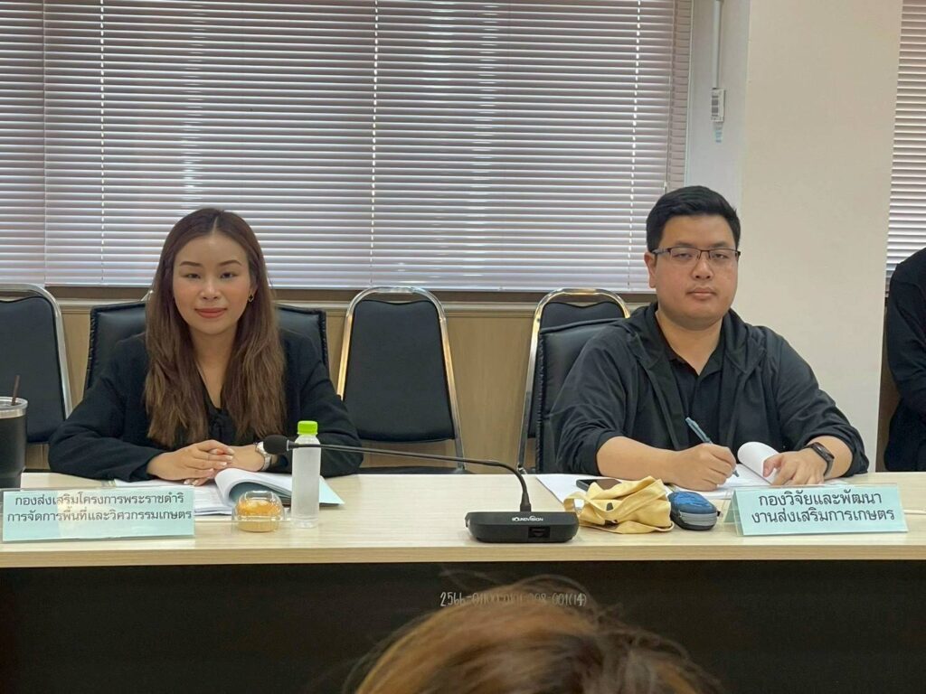 วันที่ 24 ธันวาคม 2568 เวลา 09.00 น. นายวุฒิศักดิ์ เพชรมีศรี ผู้อำนวยการกองส่งเสริมโครงการพระราชดำริ การจัดการพื้นที่และวิศวกรรมเกษตร มอบหมายให้นางสาวพัชราภรณ์ กอสิงห์ นักวิชาการส่งเสริมการเกษตรปฏิบัติการ เข้าร่วมการประชุมคณะกรรมการประสานงานวิสาหกิจชุมชน กรมส่งเสริมการเกษตร ครั้งที่ 1/2569 ประจำปีงบประมาณ พ.ศ. 2569 โดยมีนายสุริยะ คำปวง รองอธิบดีกรมส่งเสริมการเกษตร เป็นประธานการประชุม ณ ห้องประชุมกองส่งเสริมการอารักขาพืชและจัดการดินปุ๋ย ชั้น 5 อาคาร 5 (อาคารเพาะเลี้ยงเนื้อเยื่อ) กรมส่งเสริมการเกษตร และผ่านระบบออนไลน์ Zoom Meeting สรุปประเด็นสำคัญ ดังนี้