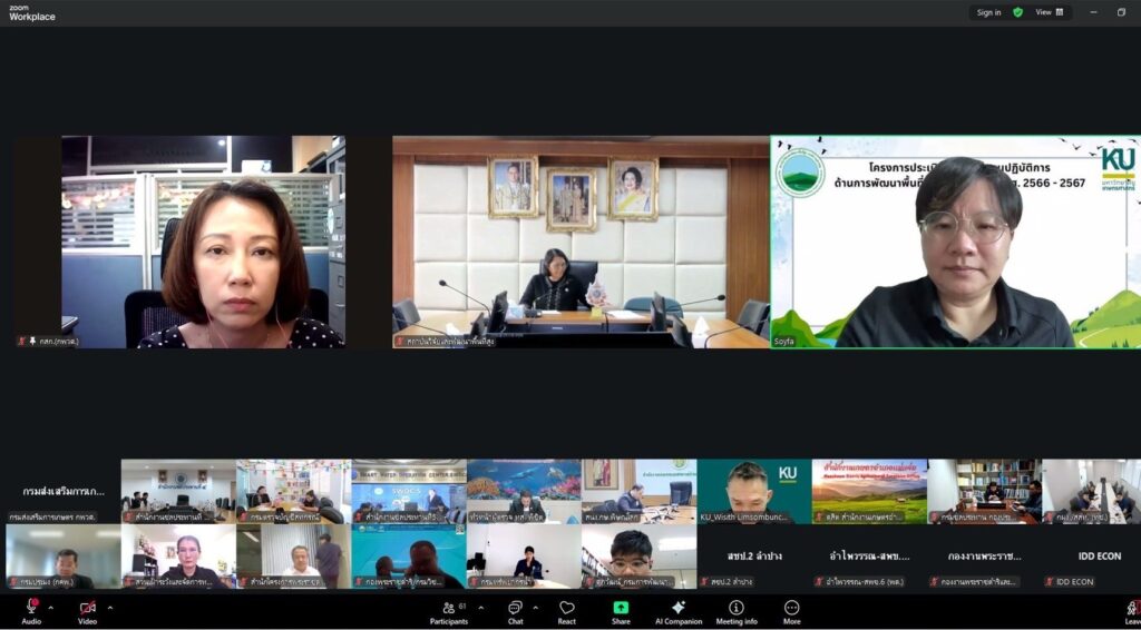 วันที่ 16 มกราคม 2568 เวลา 09.30 น. นางดวงสมร พฤฑฒิกุล ผู้อำนวยการกองส่งเสริมโครงการพระราชดำริ การจัดการพื้นที่และวิศวกรรมเกษตร มอบหมายให้ นางสาวนันทวัน ทองเบ็ญญ์ ผู้อำนวยการกลุ่มพัฒนาพื้นที่พิเศษ และเจ้าหน้าที่กลุ่มพัฒนาพื้นที่พิเศษ เข้าร่วมประชุมนำเสนอผลการประเมินกึ่งกลางแผนปฏิบัติการพัฒนาพื้นที่สูงอย่างยั่งยืน ปี 2566 – 2567 ผ่านระบบการประชุมทางไกลออนไลน์ (Zoom Meeting) โดยมี นางอาณดา นิรันตรายกุล รองผู้อำนวยการสถาบันวิจัยและพัฒนาพื้นที่สูง (สวพส.) กล่าวเปิดการประชุมและผู้แทนจากหน่วยงานร่วมบูรณาการที่เกี่ยวข้องภายใต้แผนปฏิบัติการด้านการพัฒนาพื้นที่สูงอย่างยั่งยืน จำนวน 26 หน่วยงาน เข้าร่วมการประชุม สรุปประเด็นสำคัญจากการประชุม ดังนี้